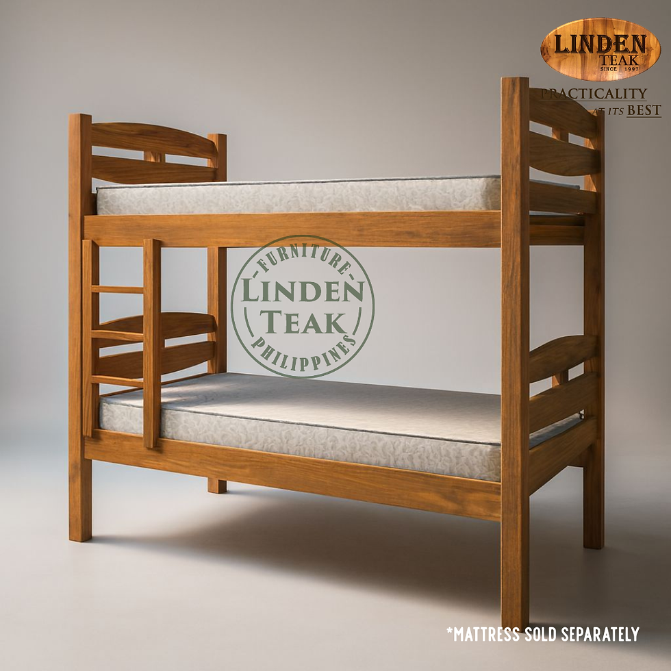 Handcrafted Solid Teak Wood Single-Single Double Deck Bed Frame Furniture